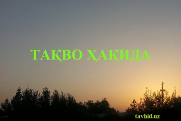 ТАҚВО ҲАҚИДА Аллоҳ субҳоналлоҳу ва таоло Ҳужурот сурасида марҳамат қилади: يَا أَيُّهَا النَّاسُ إِنَّا خَلَقْنَاكُم مِّن ذَكَرٍ وَأُنثَى وَجَعَلْنَاكُمْ شُعُوباً…