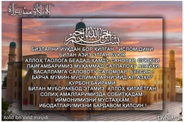 Ассалому алайкум азиз юртдошлар! Сизларни мусулмонларнинг улуғ байрами – Қурбон хайити билан самимий муборакбод этамиз! Аллоҳ субханаҳу ва Таоло барча…