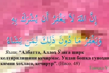 ТАВБАГА ШОШИЛИШ Аллоҳ субҳонаҳу ва таоло Қурони каримда бандаларини тавба қилишга чорлайди: وَتُوبُوا إِلَى اللَّهِ جَمِيعاً أَيُّهَا الْمُؤْمِنُونَ لَعَلَّكُمْ تُفْلِحُونَ…